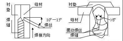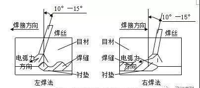 右焊法时熔敷金属的厚度较薄,后背成型较美丽,但焊强会阻住操作家的视线,影响对熔池前端的参观。