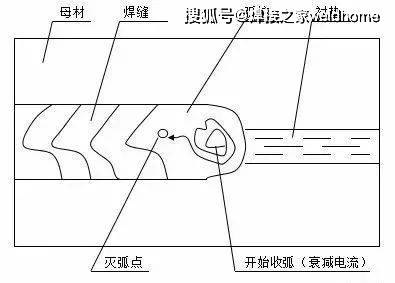 当末了的融解金属填满坑后,再将电弧引到已凝集的焊好的焊缝上。此时摊开焊枪的按钮,电弧最终熄灭,缩孔也就不会出现,如图9所示。