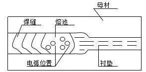 采用单面焊时,燃弧的身分至极苛重,如图3所示。因为实行CO2单面焊时,电弧的电流密度较大,正在熔池前端的母材上变成半圆孔,跟着电弧的行进,熔化金属不休填满此半圆孔。